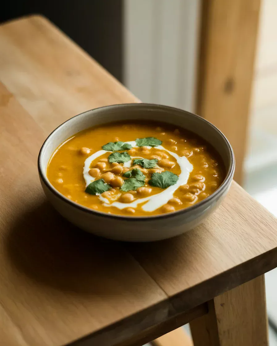 A comforting and budget-friendly soup made with chickpeas, turmeric, and a blend of spices, easily prepared in a slow cooker.