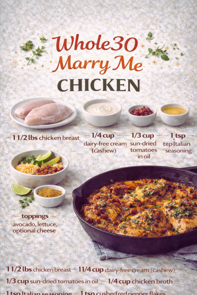 Whole30 Marry Me Chicken is the kind of dinner that saves the day when you want something special but do not have an hour to fuss in the kitchen. Picture this: it is Tuesday, you are tired, and the fridge is looking a little bleak. You still want a cozy, satisfying meal that feels restaurant-level without any dairy or refined sugar. That is exactly where this recipe shines. It is creamy without cream, indulgent without the guilt, and easy enough to pull off even when your brain is on low power mode. Ready to fall in love with dinner again?Â
